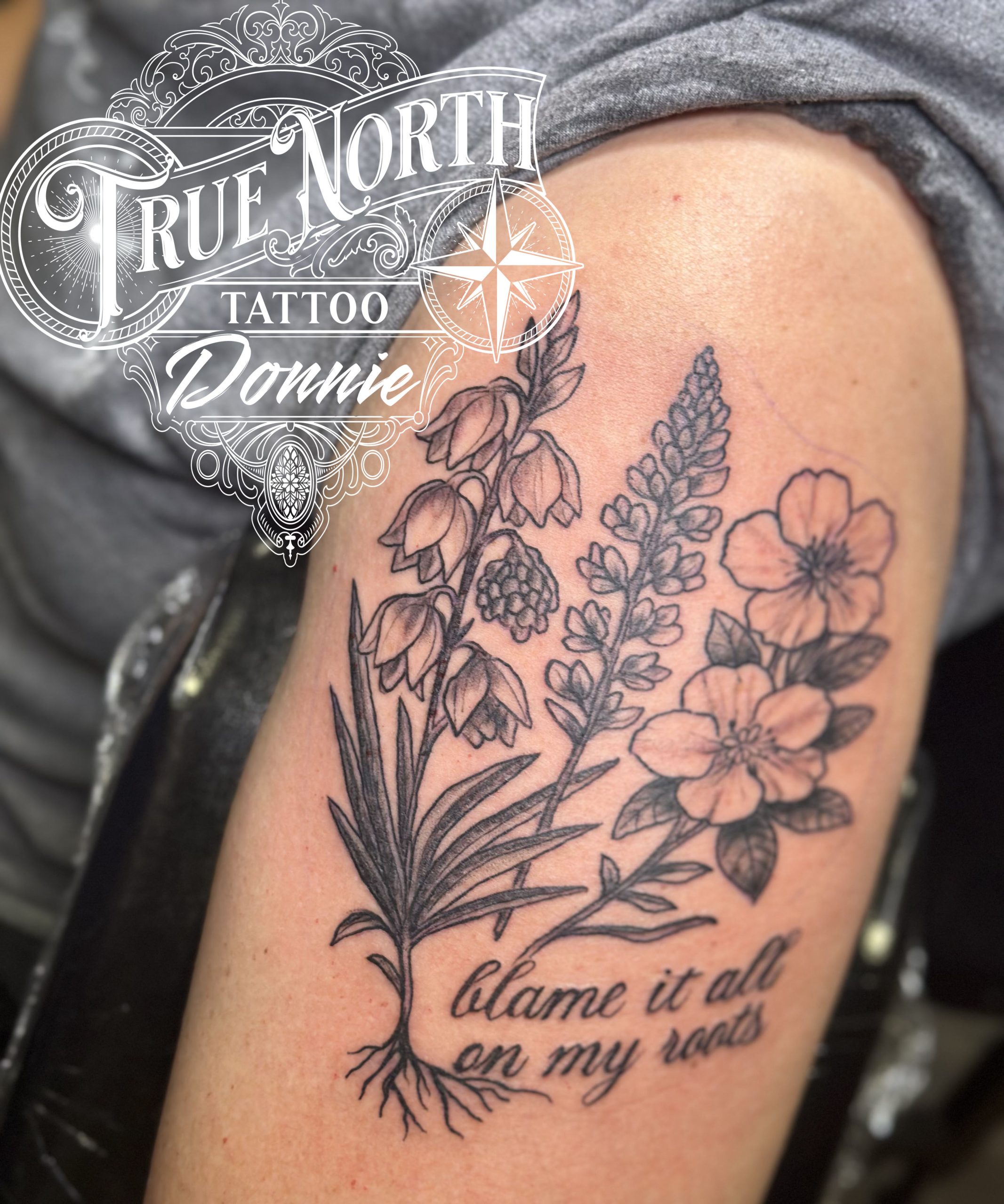 Donovan - Black and Grey Flowers and Script