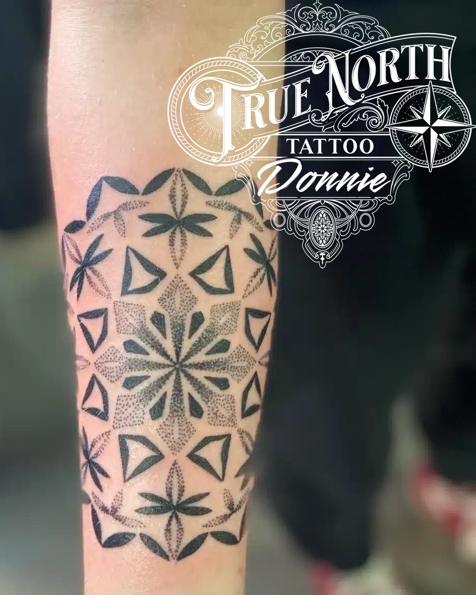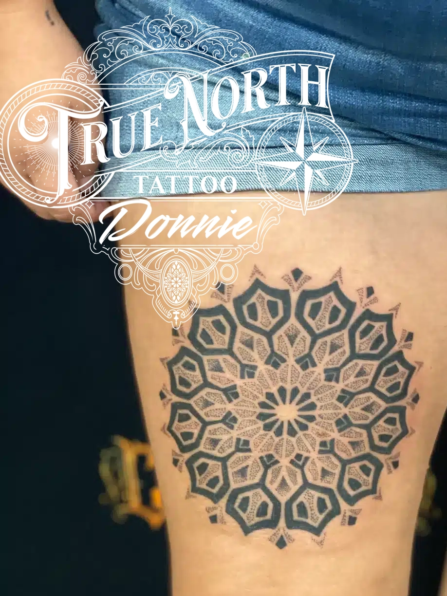 Donovan is a multi-talented powerhouse at True North Tattoo, bringing 14 years of professional experience to both the piercing chair and the tattoo station. Whether he’s executing a flawless piercing or diving into a complex tattoo, Donovan’s precision is unmatched. He enjoys diving into the intricate worlds of Mandalas and Sacred Geometry, but is equally at home with Neo-Traditional, Anime, and high-impact Horror pieces.
